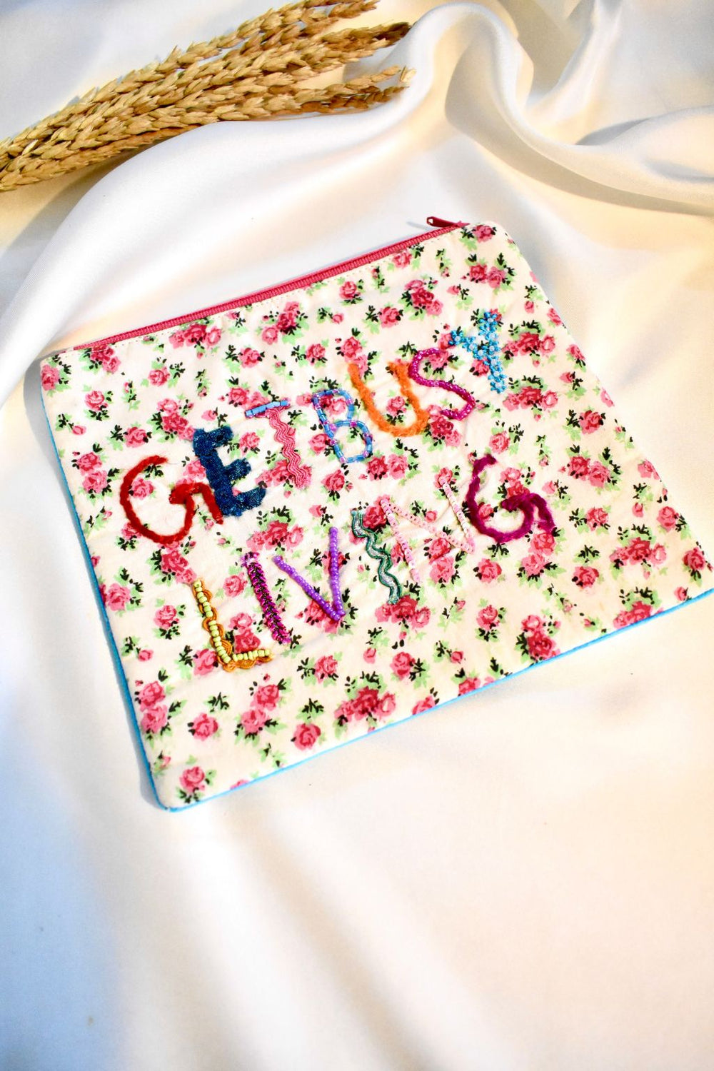 White Floral Embroidered Pouch
