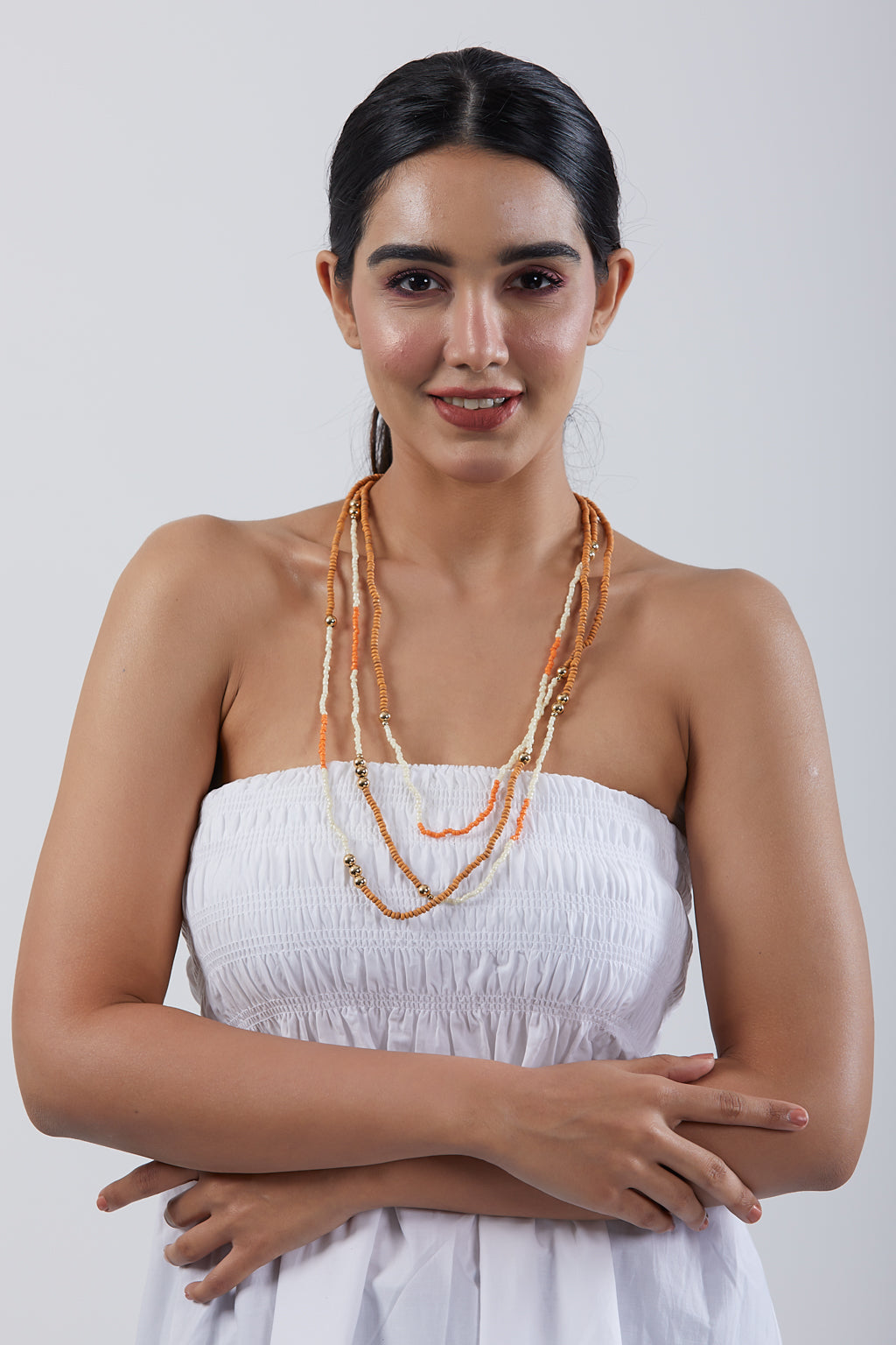 Vibrant Elements: Along with the seed beads, the necklace incorporates vibrant elements such as golden metal beads. These elements enhance its bohemian charm and contribute to its unique and playful appeal.